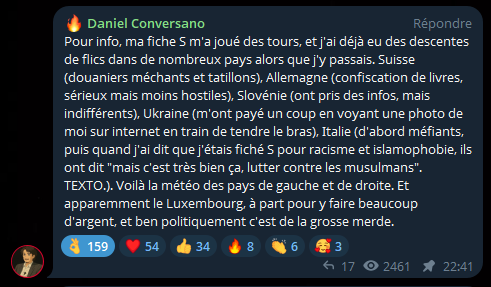 Justement il a posté ça hier, et comment veux-tu "d'autres sources" vu que c'est lui et limite sa famille qui se fait contrôler aux frontières...