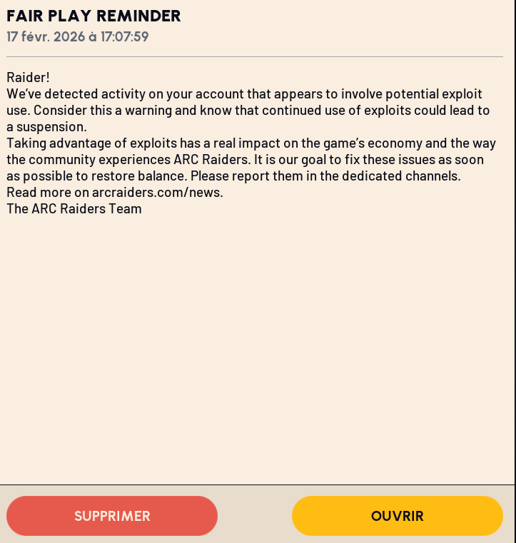 je viens de recevoir le message a l'instant , bon apparemment j'ai juste un avertissement
