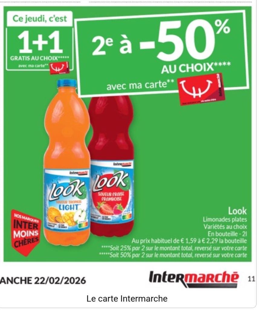 Regarde aussi mon confrère Intermarché. Ses prix sont plus chers que Colruyt mais la version Intermarché belge applique des grosses promotions souvent en 1+1 sur ses mdd et là ca devient intéressant. Par exemple si tu achètes demain, tu auras ses limonades Look donc son mdd en 1+1