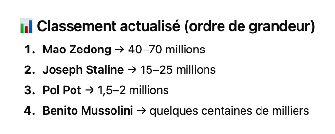 Notez qu'il a pris Himmler ou Mussolini en exemple, mais surtout pas Staline, Pol Pot ou Mao, qui ont fait 20 fois plus de morts qu'eux