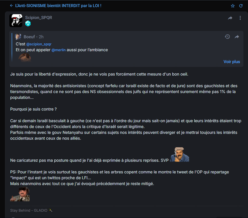 Nonobstant de mon côté je n'oublies pas l'entreprise de diabolisation de l'homme blanc qui a été mené par ces sinistres individus. C'est très bien que ça s'arrête, et perso je n'ai plus de raison de m'attaquer aux juifs désormais, mais jamais je rejoindrai les rangs de la droite casher, qu'on soit clair après tout ça jamais je ne serais une pute à juif