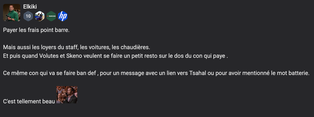 Moi aussi en vrai, l op me traite de communiste à chaque fois mais je m en blc qu ils aillent au resto ou qu ils se rémunèrent sur le site, c était évident de toute façon et c est pas un problème c est eux les fondateurs faut juste de la TRANSPARENCE et pas prendre les gens pour des cons, publiez le bilan et vous aurez plus de dons j en suis convaincu