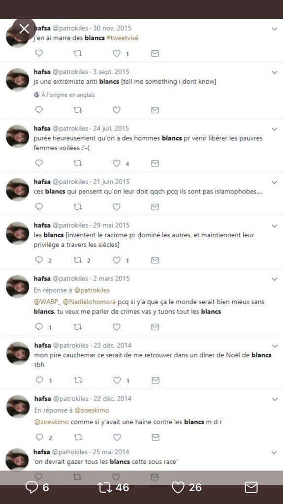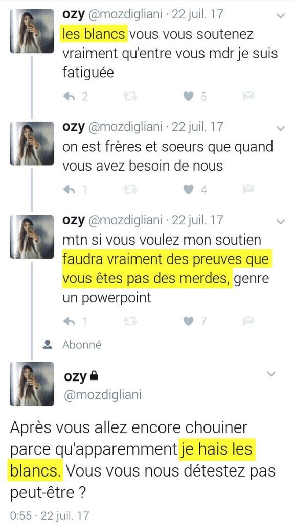 Aucun blanc n'aurait les couilles de dire l'inverse sur internet sans avoir une sécurité et un anonymat totalement garantit. Mais eux ça passe, ça poste même des photos d'eux sur le même compte tellement ils en ont rien à foutre et que c'est littéralement autorisé