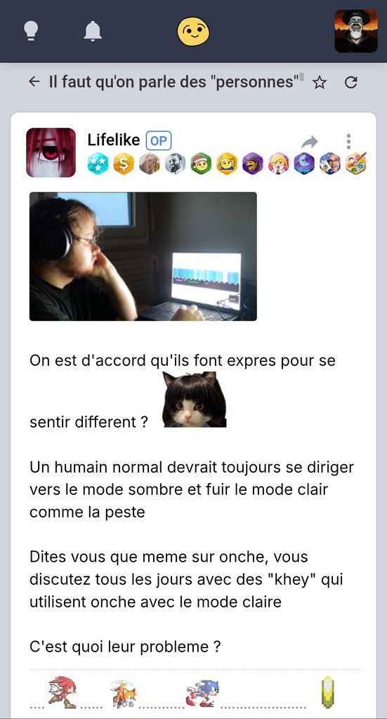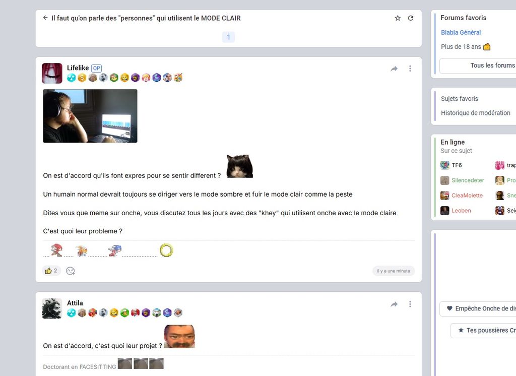 Dites vous que meme sur onche, vous discutez tous les jours avec des "khey" qui utilisent onche avec le mode claire
