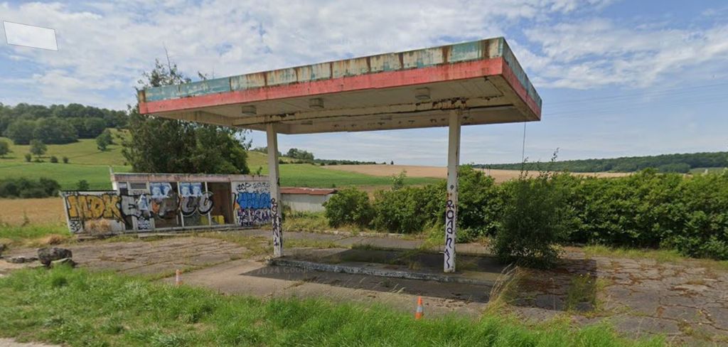 Voici un autre exemple avec une station service désaffectée depuis bien des années. Il y avait sans doute du passage ici dans les années 80, des gens qui discutaient, qui se sont retrouvés par hasard ici, des discussions avec le gérant.