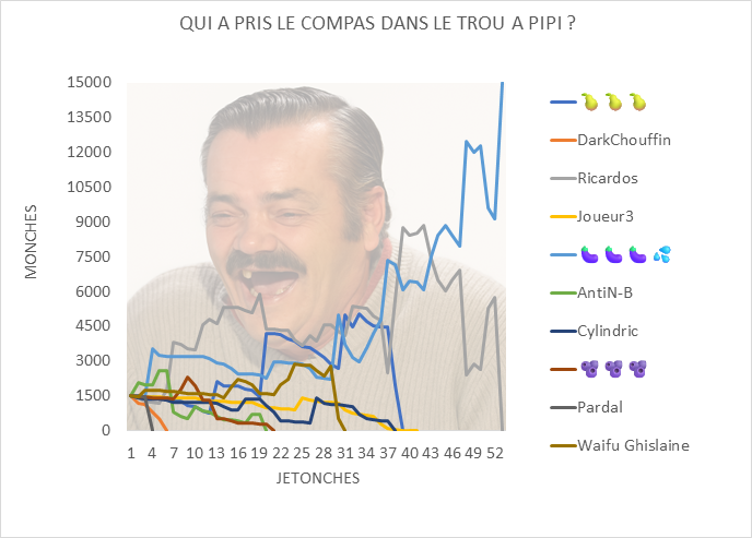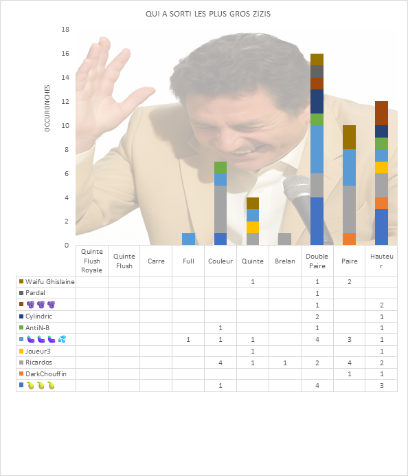 6ème : Waifu Ghislaine vaporisé par 🍐🍐🍐 avec Double Paire Roi et Huit Hauteur As contre Double Paire Roi et Huit Hauteur Quatre à l'issue de la manche n°30