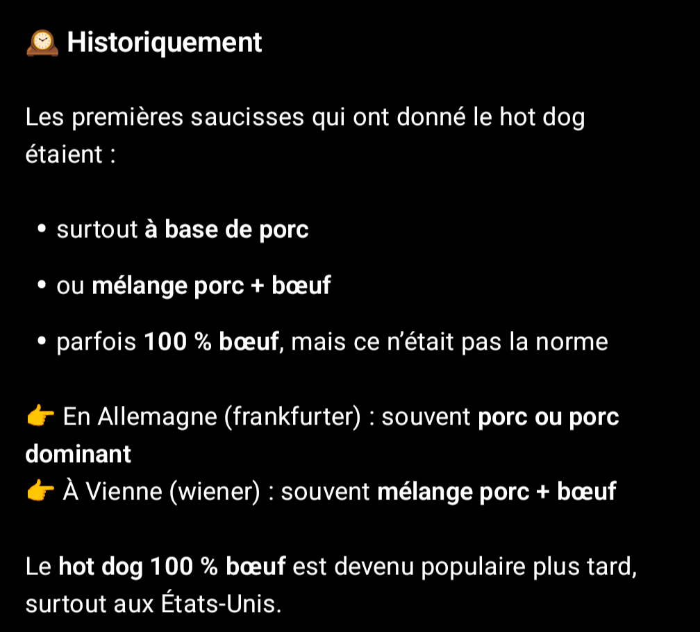 Le hot-dogs à l'origine c'est pas du boeuf donc ton intervention de tout à l'heure n'avait aucun sens tu peux disposer