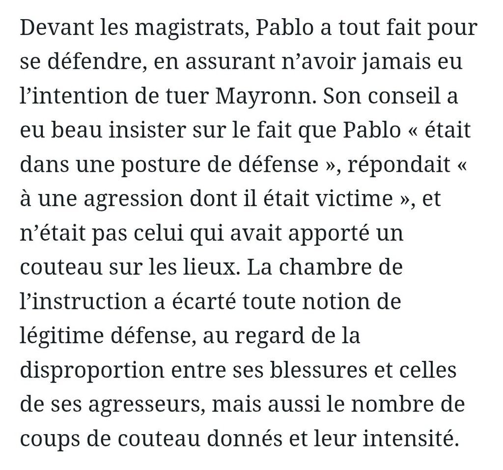 D'abord poursuivi pour meurtre et tentative de meurtre, Pablo a été condamné pour violences volontaires sans intention de donner la mort.