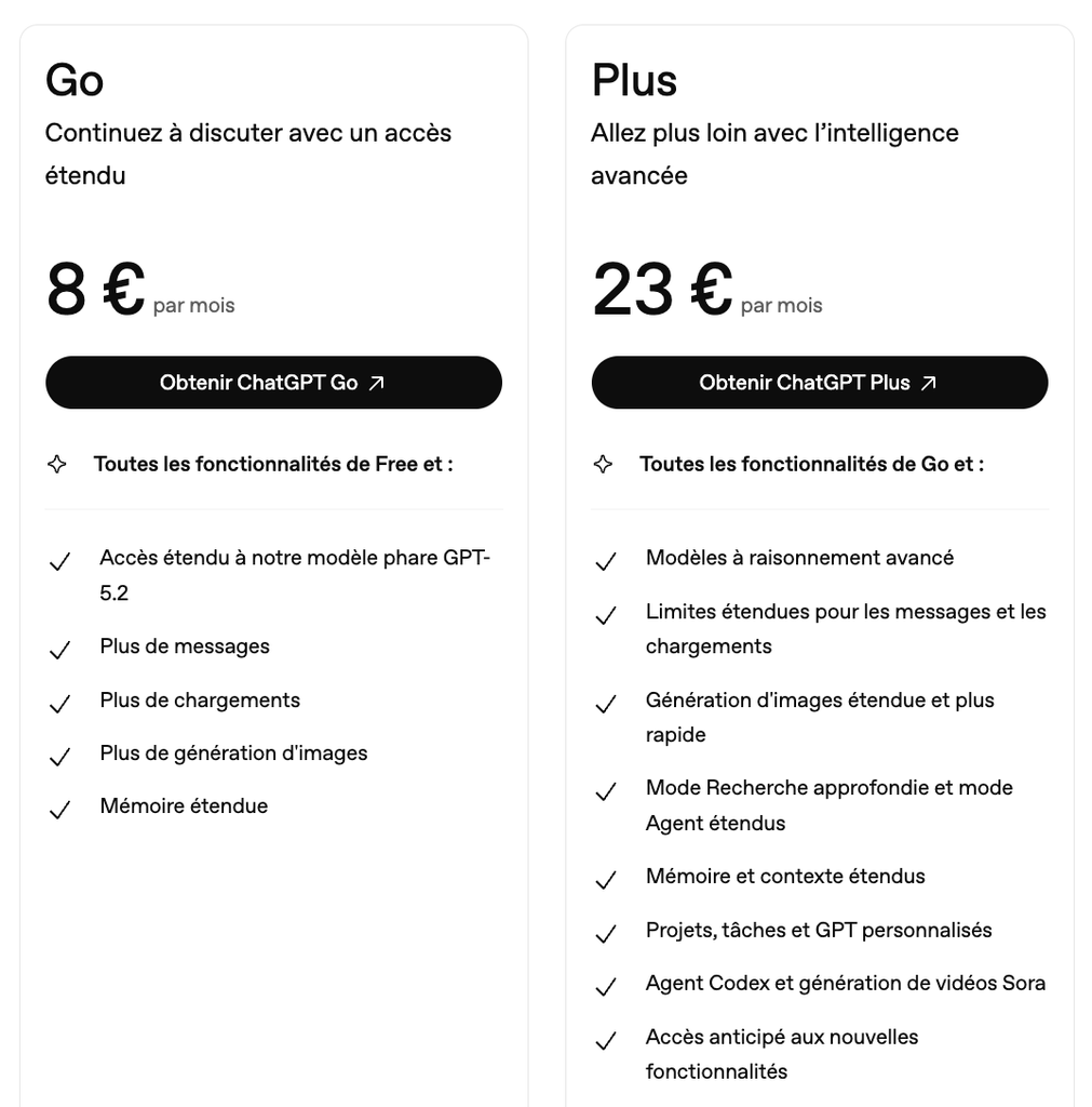 ➡️ Plan idéal si tu veux dépasser les limites du gratuit sans payer le tarif élevé de Plus.