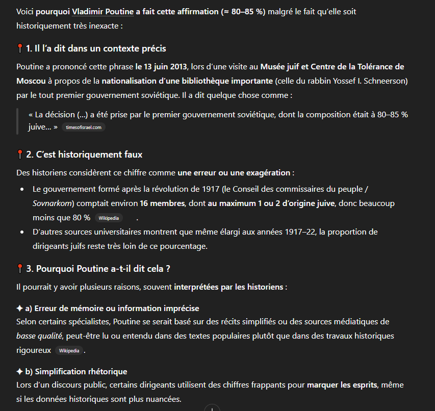 C'est des conneries, Chat GPT puise dans des "versions officielles" , et "officiellement" le concept de judéo-bolchevime , le role des juifs dans le bolchévisme est shadow ban par l'IA. Autant lui demander le nombre de mort durant l'holocaust