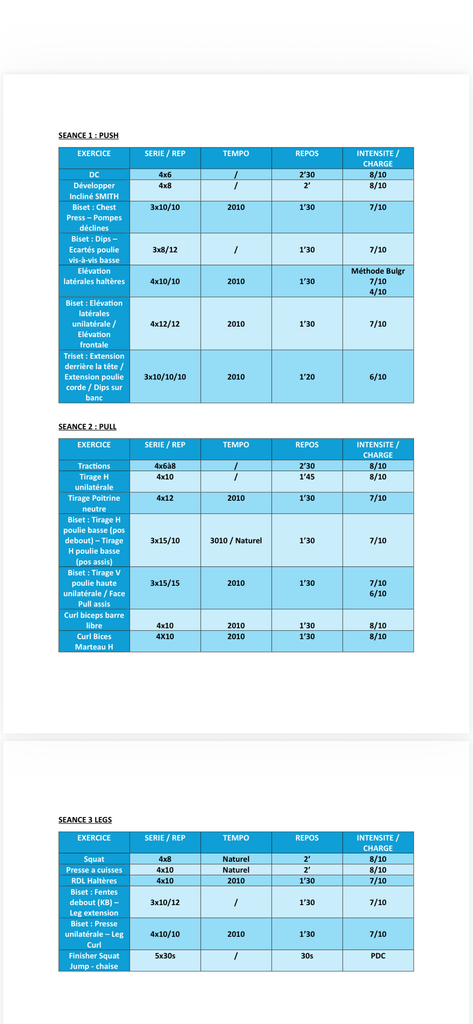 Vois trouverez ci dessous un programme de muscu sur 5 séances, c'est un coach (un vrai pas une trompette ahi) de ma salle qui l'a fait et un clé de là bas me l'a filé.