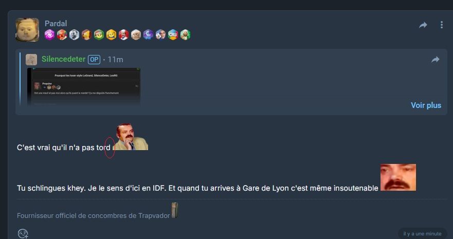 Tu schlingues khey. Je le sens d'ici en IDF. Et quand tu arrives à Gare de Lyon c'est même insoutenable