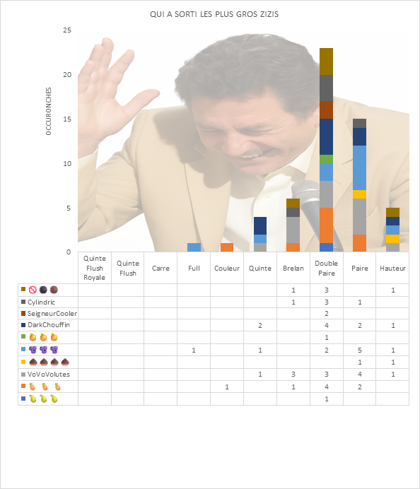 10ème : 🍐🍐🍐 sodomisé par VoVoVolutes avec Brelan d'As Hauteur Valet contre Double Paire Valet et Cinq Hauteur As à l'issue de la manche n°3