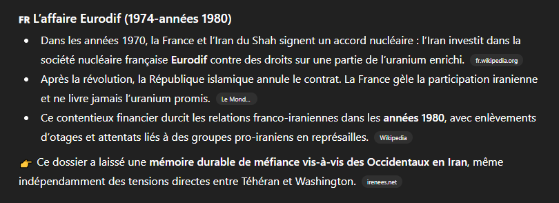 Un truc intéressant dans l'histoire de l'iran c'est que la france gaulliste était très proche de l'iran on avait de très bonnes relations et les us sont venus explosés ça