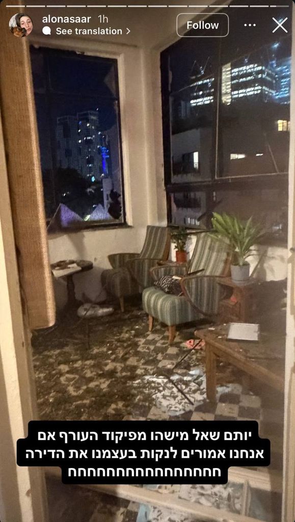 Her apartment seems to have been damaged during the Iranian missile impacts tonight.