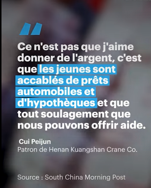 Il s'agit d'une politique de revenus déguisée pour que les gens puissent assurer le paiement de leurs crédits, en Occident c'est l'Etat qui assure la redistribution, en Chine les entreprises ne sont pas indépendantes de l'Etat.