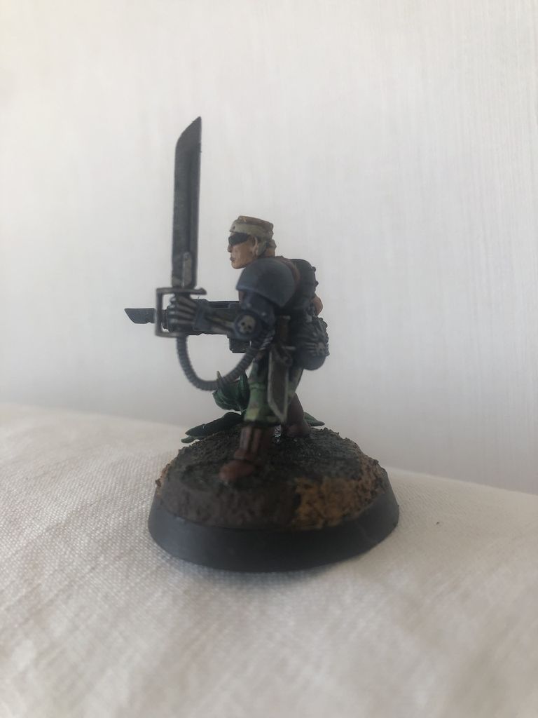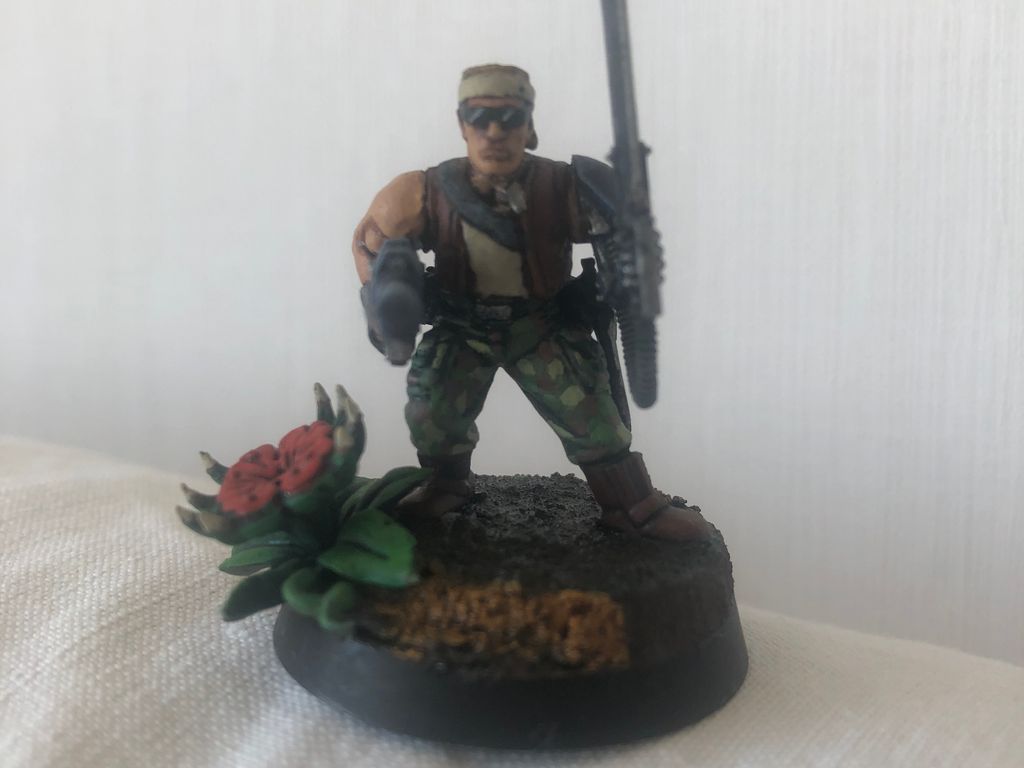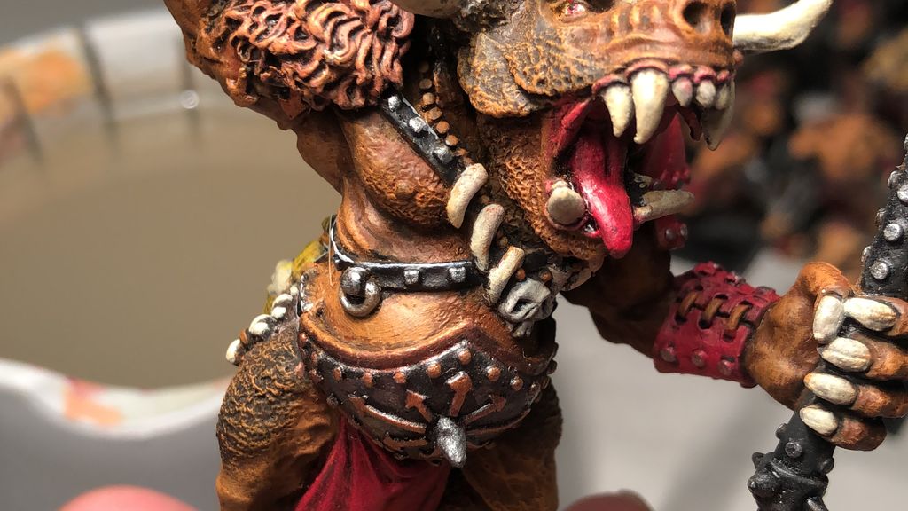 si je peux me permettre une remarque, en tant que peintre sur figurine moi aussi, je trouve que ta figurine est belle, mais un peu trop monochrome (brun, marron, rouge) et que pour plus de lisibilité elle aurait gagné à avoir des détails en bleu/vert/mauve pour contraster