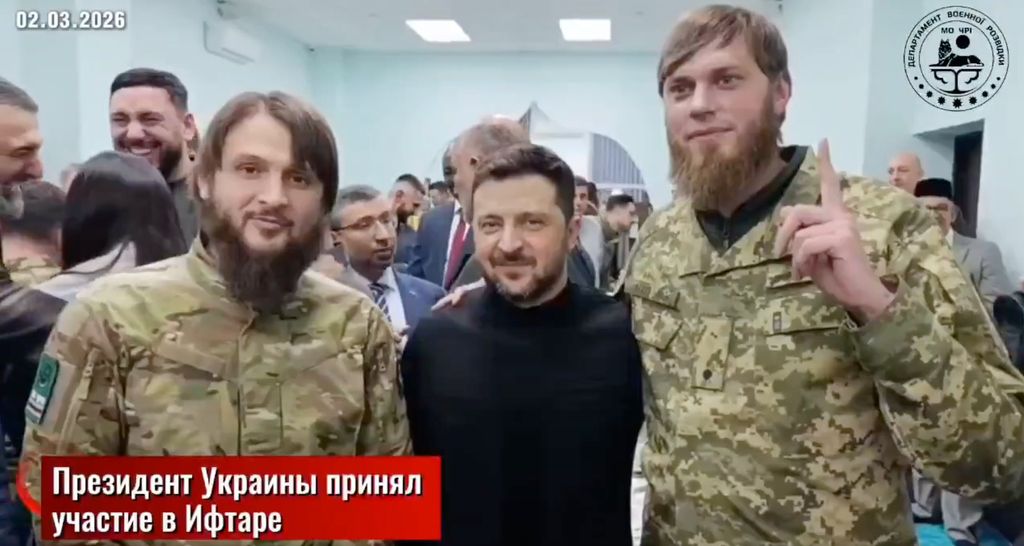 Le djihadiste tchétchène qui fait oklm un doigt levé (signe islamiste) avec Zelensky mais tout va bien