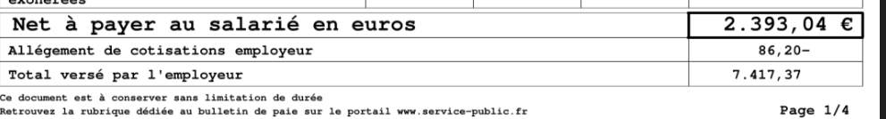 pour recevoir une paye de 2400euros net mon employeur a du donner 7400euros