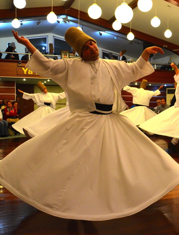 Pour ceux d'entres-vous qui ne le sauraient pas les derviches tourneur sont des musulmans mystiques, très connus entre autre à cause de leur danse très particulière au cours de laquelle ils dansent en tournant sur eux-même pendant des heures. L'idée est ici d'atteindre une sorte de transe mystique censée leur permettre d'entrer plus facilement en relation avec le divin.