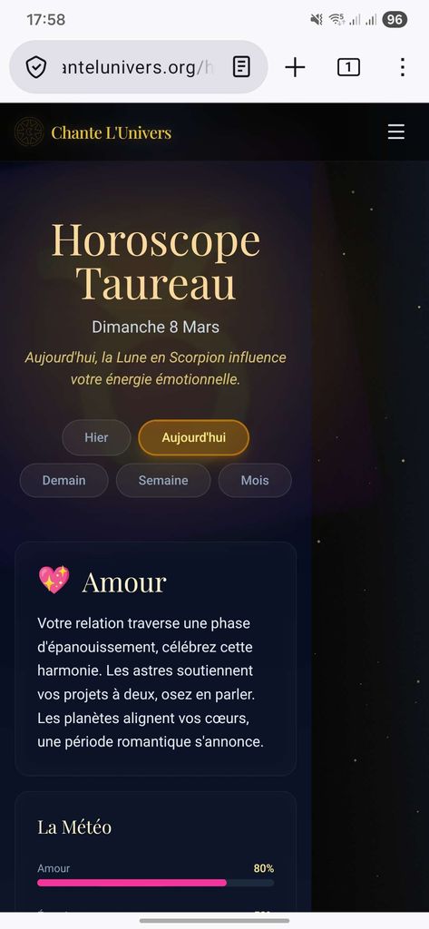 Sur téléphone sur une page horoscope, y'a une bande à droite inutilisé qui fait qu'on peut soit dézoom soit déplacer la page vers la droite mais elle apporte rien