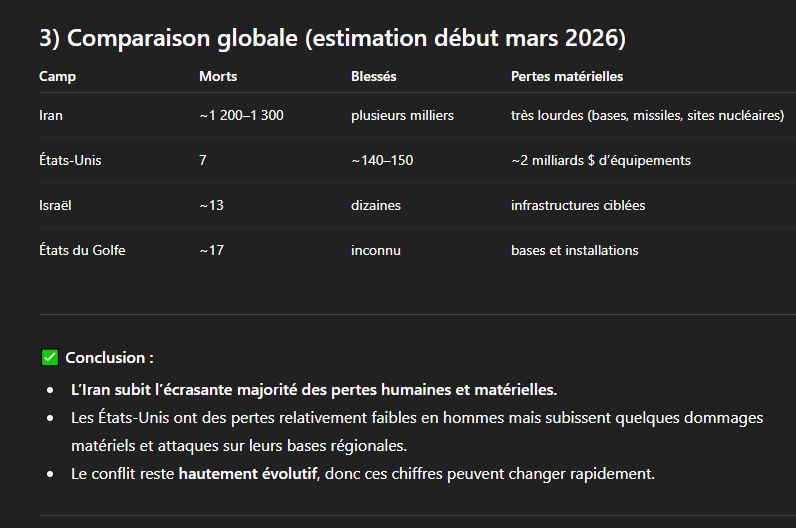 Tout ça sans parler de l'assassinat de centaines d'écolières et des attaques chimiques volontairement provoquées en détruisant des raffineries et dépôts de pétrole, ainsi qu'une volonté de s'en prendre à la population directement en détruisant des usines de déssalement, ce qui prouve qu'il n'y a aucun levier qui puisse viser directement l'Etat iranien