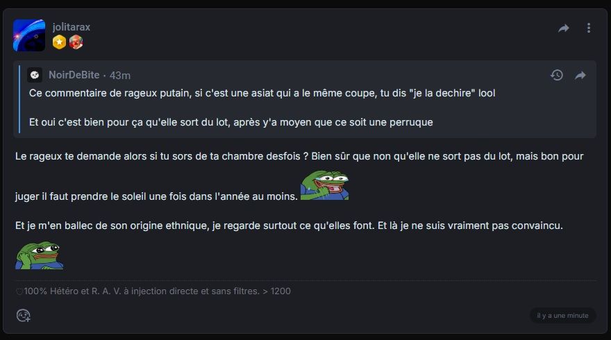 Oui mais moi je n'ai pas JEW dans mon pseudo