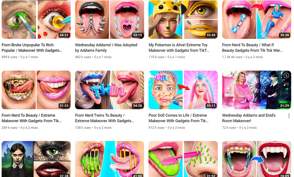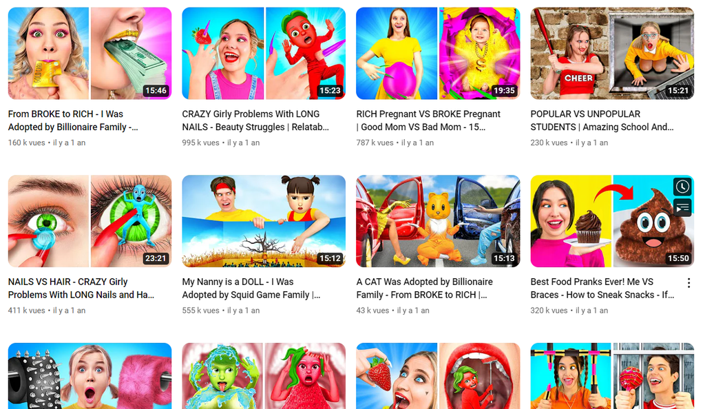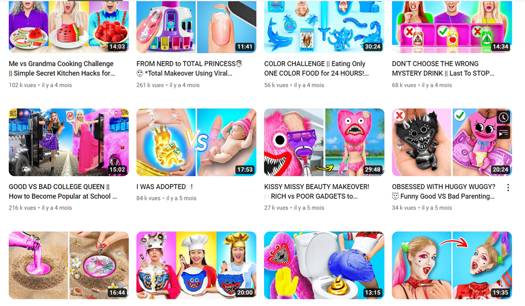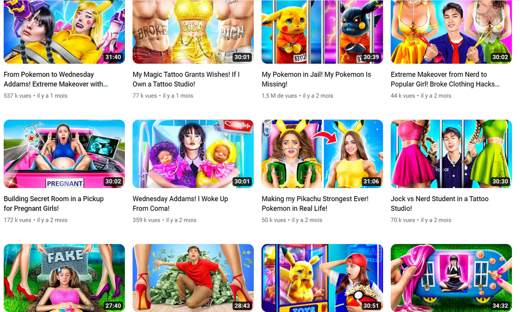 Si le gamin tape les bons mots clés comme "wednesday, huggy wuggy, poor vs rich..."
