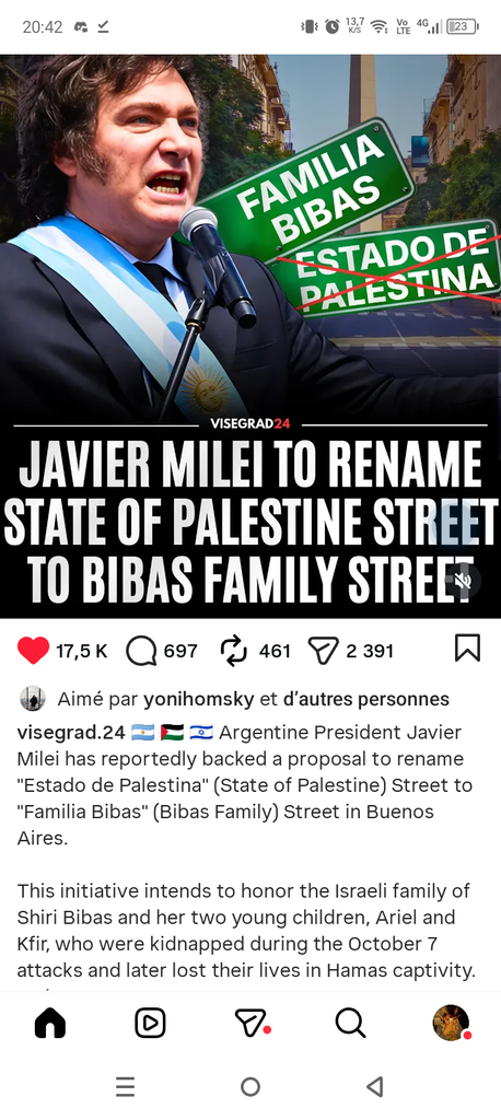 Javier Milei renomme la Rue de Palestine à Buenos Aires au noms de victimes du 7 octobre