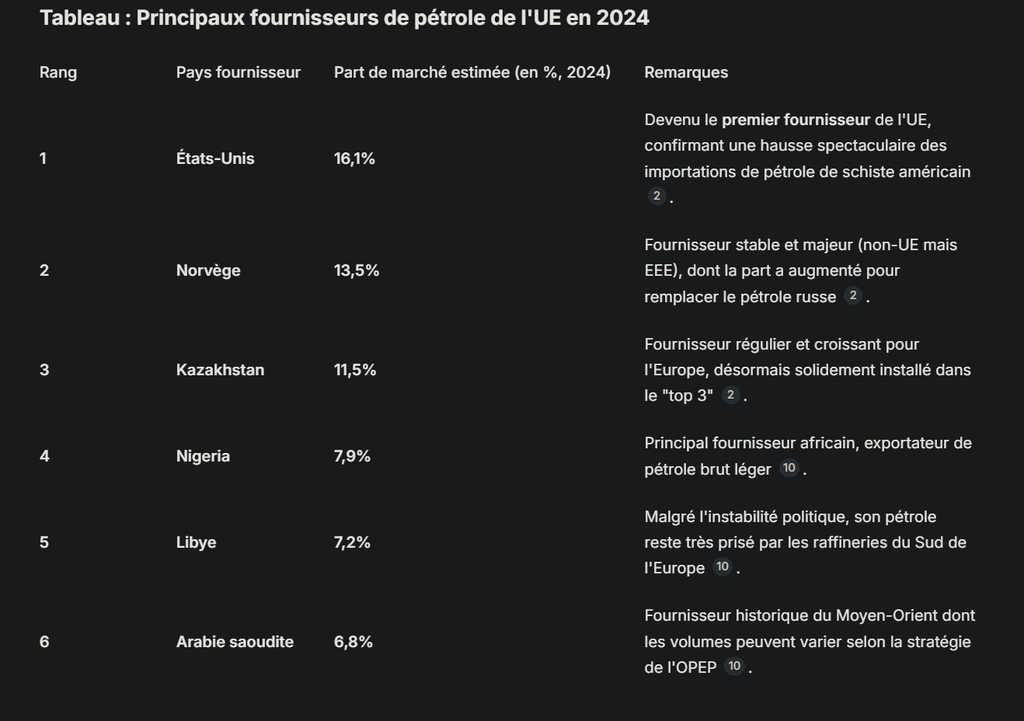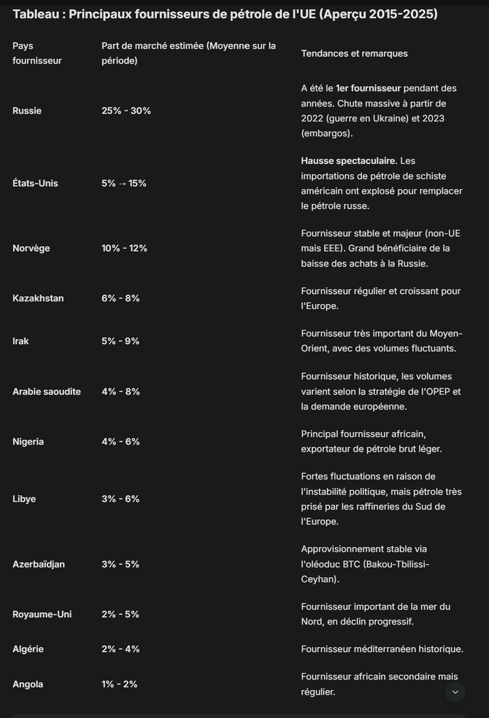 Tu as raison que l'UE ne consomme pas le pétrole iranien et peu du MO: