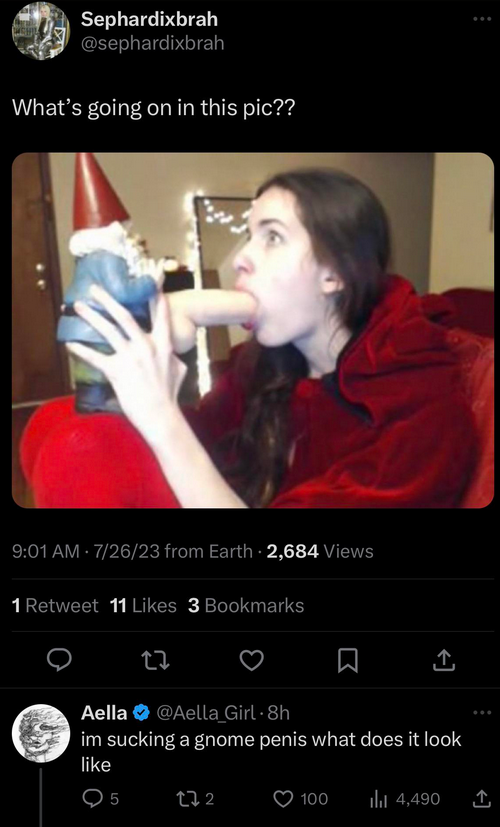Aella (/ˈeɪlə/, EY-la;[1] born February 22, 1992)[2][3] is a pseudonymous American writer, blogger, sex worker,[4] and camgirl[3][5] who, as described by David Auerbach, "has written extensively about the psychology and economics of online sex work, conducting extensive surveys and research in order to lay out the ecosystem of online sex workers."[6]