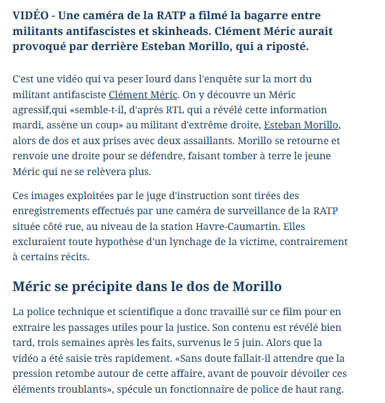 Ca change de Clément Méric mort avec une seul droite d'un seul mec alors qu'il attaquait Esteban Morillo dans le dos.