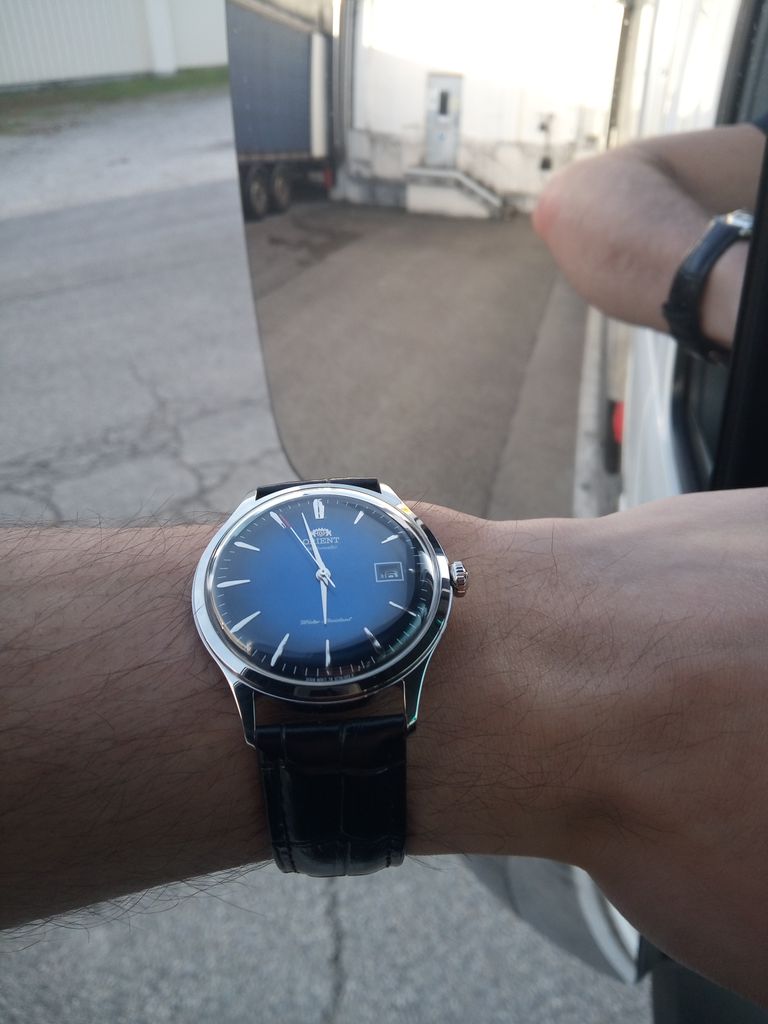 K2000 pour relancer mon topic sur les montres je poste des photos de mon oriente bambino V4, j'ai changé le bracelet d'origine pour mettre un bracelet en cuir style lézard.