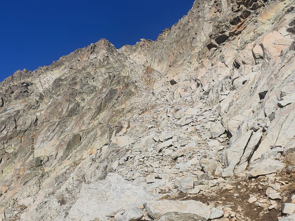 Partez vers le col de Valibierna en suivant le gr11, c'est entre de la caillasse et du chaos.