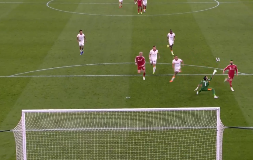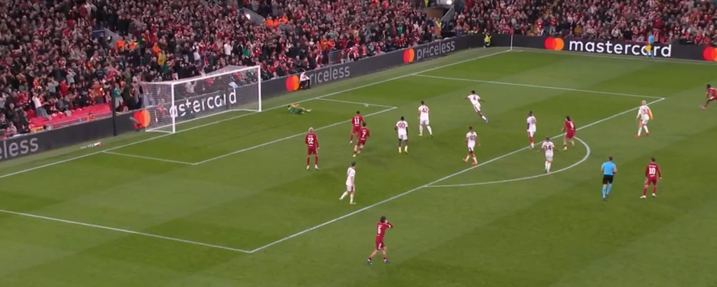Liverpool qui met la balle en touche loin dans le camp adverse pour venir les presser ensuite.
