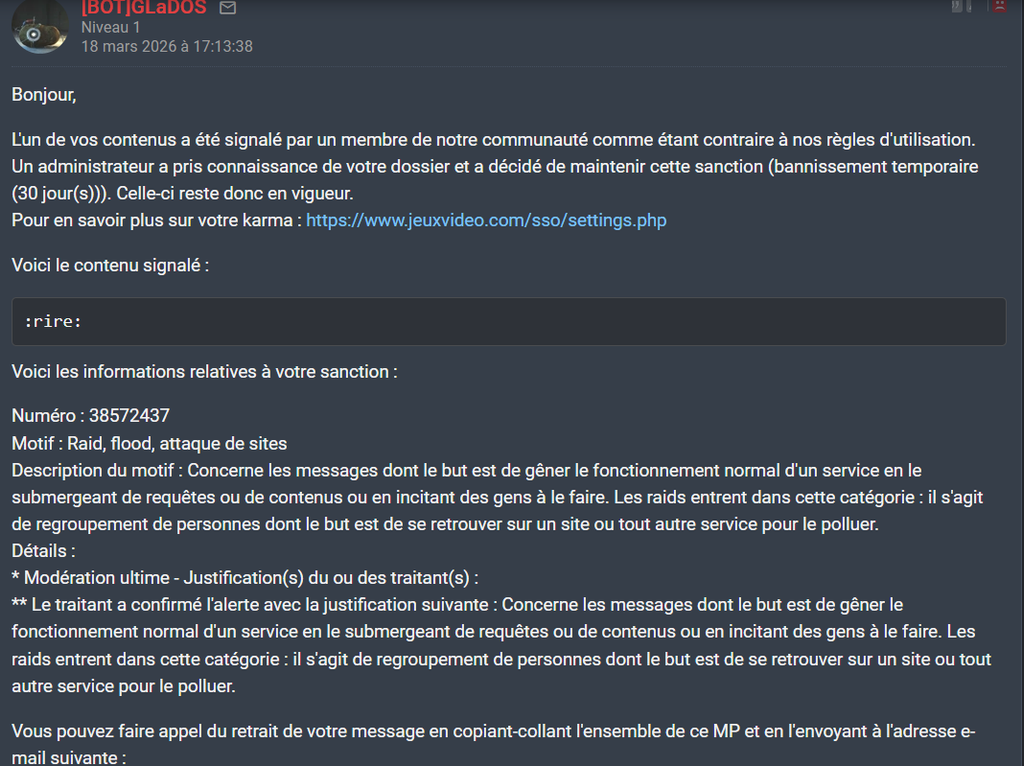 Mérité, tu devrais même avoir un goulag de 30 jours pour avouer aller sur jvcuck