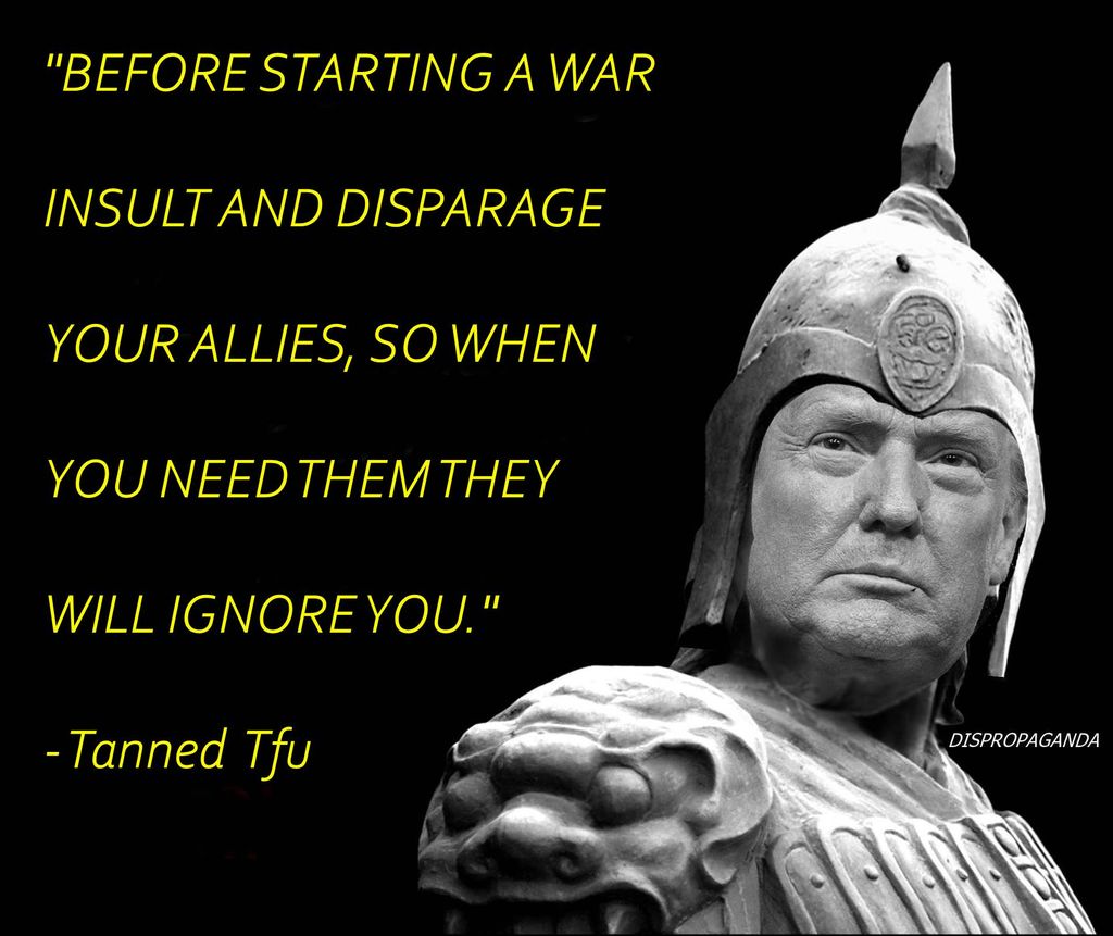 Maintenant il devient complètement zinzin, après avoir supplié tout le monde de venir l'aider à débloquer le détroit d'ormuz, après que tout le monde lui ait mis des vents, puis après avoir changé d'avis en disant qu'il avait besoin de personne...