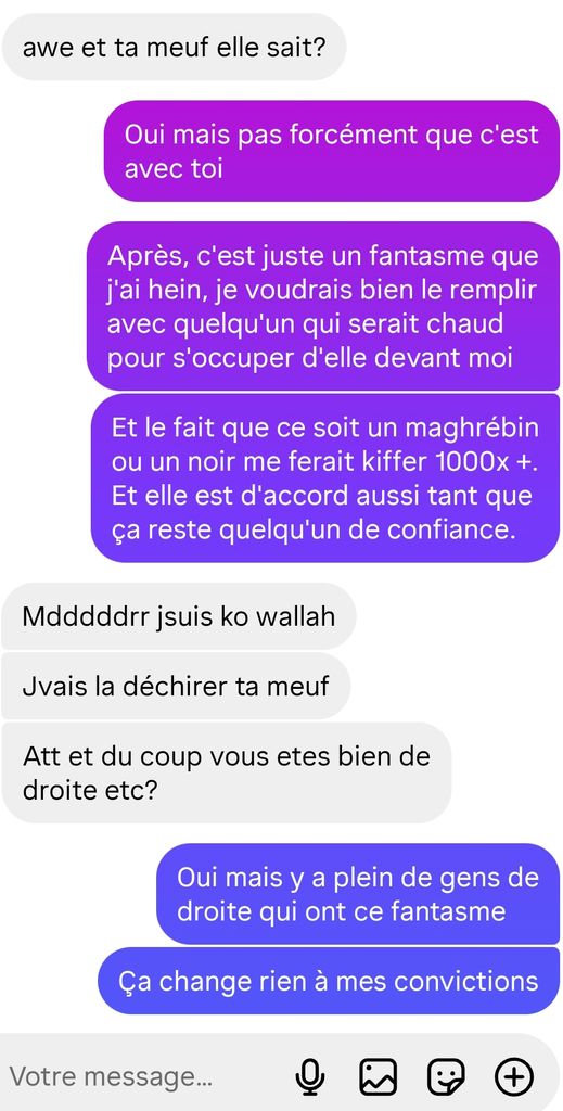 Personne de droite n'a ce genre de fantasme, c'est clairement un truc de gauchiste ethno masochiste