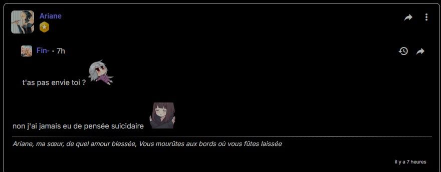 non j'ai jamais eu de pensée suicidaire