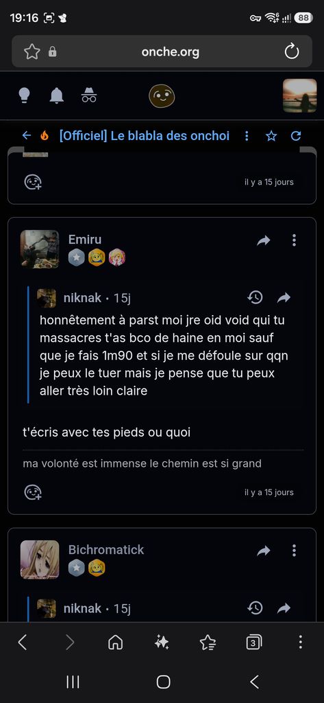 j'ai même pas compris ce qui lui est reproché à orsik + je vois pas pk tohru parle de nous sur un forum où on ne va même pas
