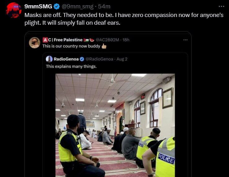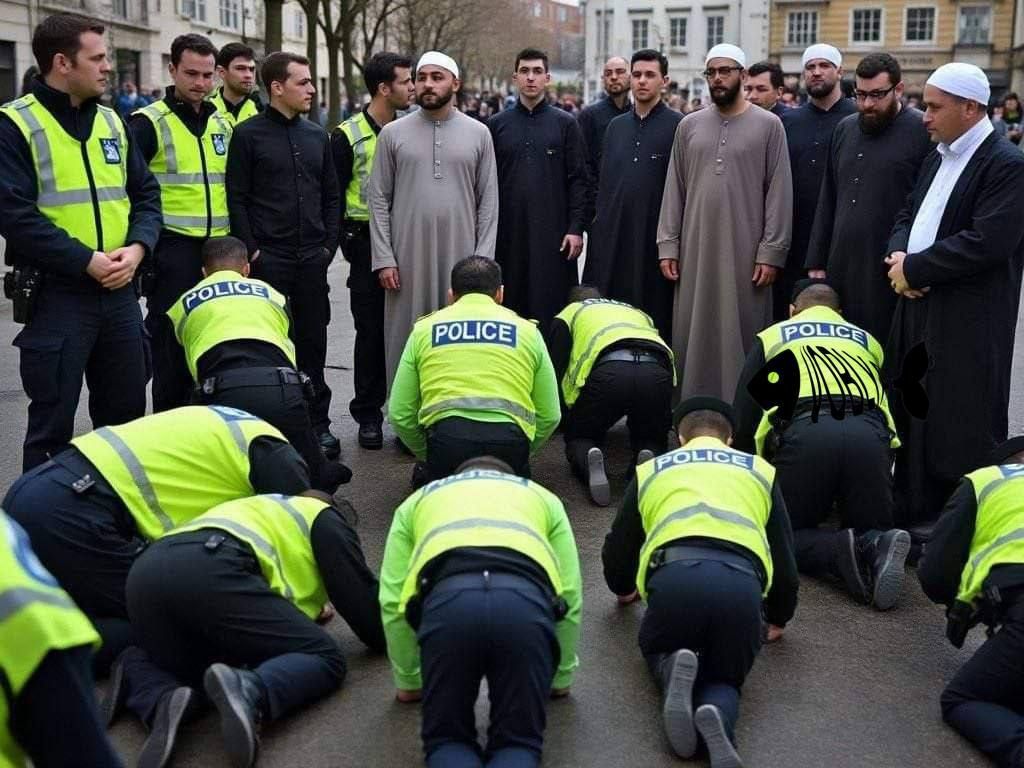 ça me rappel les videos ou les flic british escorté des hordes de musulmerde armé de machette pour qu'ils puisse attaquer des anglais quand il y avais les manif avec les mec habillé en croisé / chevalier avec le drapeau de saint george