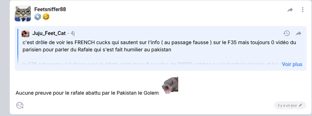 Maintenant si tu veux continuer à chier sur le rafale par pure mauvaise foi ce n'est plus mon problème,aucun intérêt à discuter avec un rageux