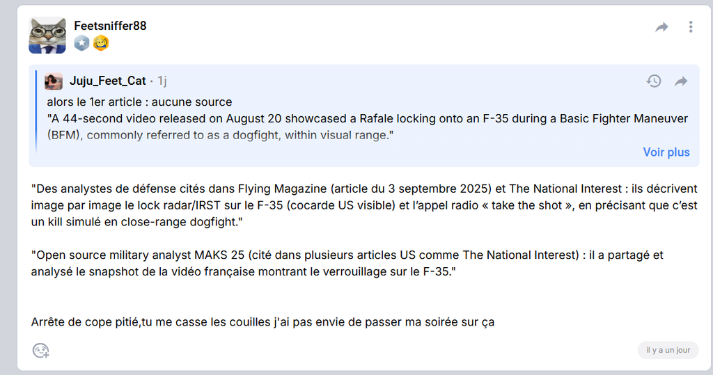 tu as dit qu'un F35 a abattu un Rafale virtuellement = tu as été débunk