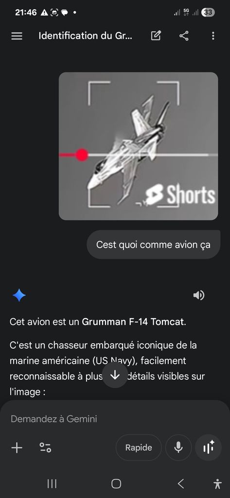 Mdr je viens de demander à Gemini et maintenant il dis que c'est un F14,hyper fiable Gemini ayyyaa