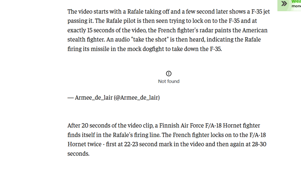"Open source military analyst MAKS 25 (cité dans plusieurs articles US comme The National Interest) : il a partagé et analysé le snapshot de la vidéo française montrant le verrouillage sur le F-35."