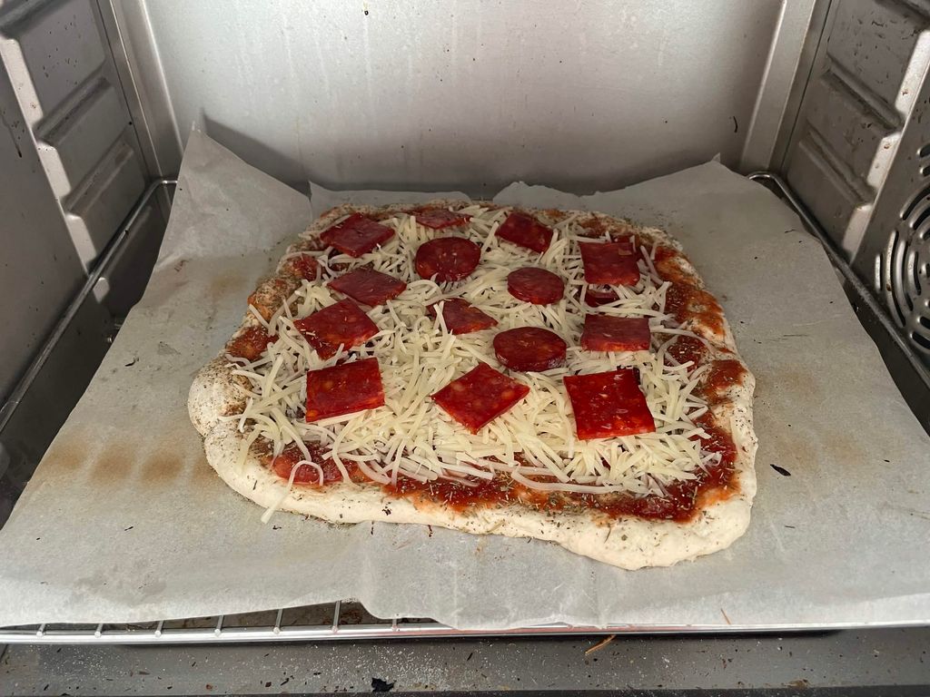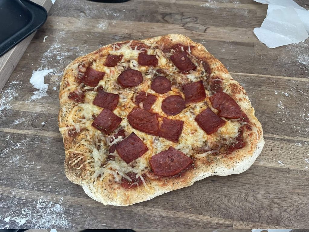 C'est carré, mais essaie de les faire un peu plus fine les tranches de chorizo comme ça tu pourras mieux les répartir et possiblement en mettre moins tout en gardant le goût ce qui te permettrait d'en avoir assez pour une autre pizza