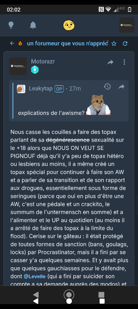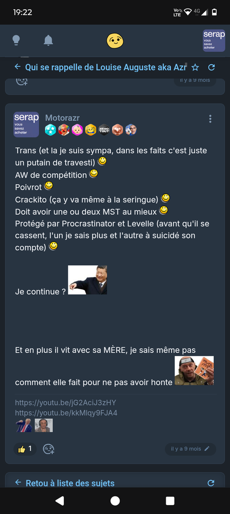 Je ne suis pas sur Avenoel donc la fonction recherche ne fonctionne pas. Mais si tu tape le pseudo en étant inscrit là bas tu trouveras les topics qui servent de journal de bord