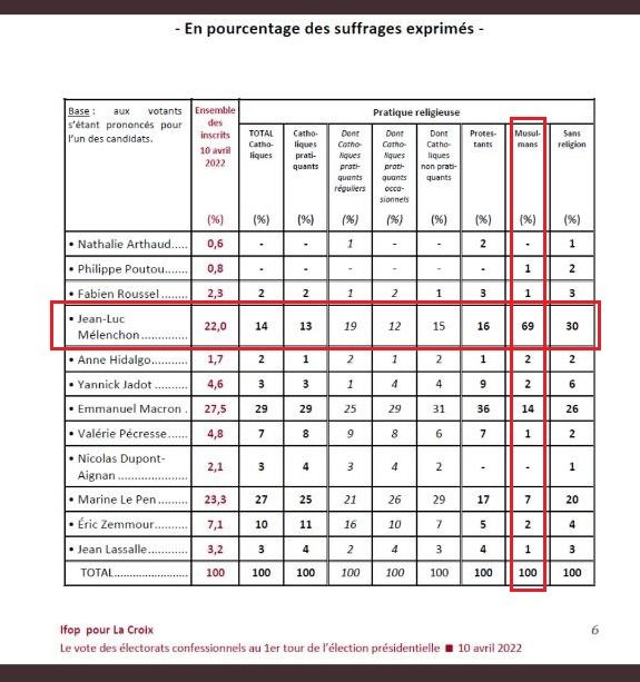 J'ajoute que tous les immigrés ne sont pas muzz, or ce papier n'evoque que les votes par religion, ce qui en réalité est impossible à chiffrer aussi précisément
