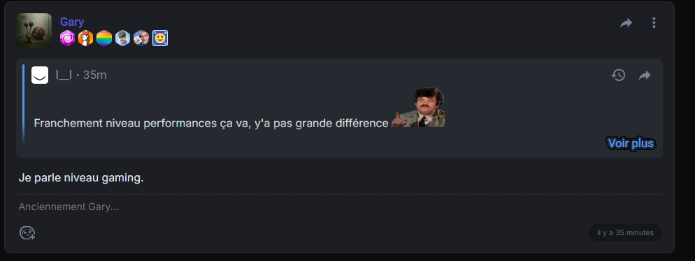 Bah c'est bien ce que je dis, niveau performances