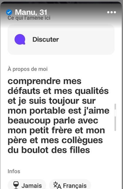 C'est la syntaxe et le vocabulaire de base de 50% des femmes de badoo